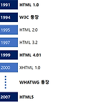 문득 우리가 웹페이지를 생성하기 위해 사용하는 HTML이 어떻게 탄생하게 되었는지 궁금해져서 이 글에 정리해볼까 한다. 아래의 그림은 대략적인 HTML의 발전과정을 연도별로 그린 것이다. SGML(Standard Generalized Markup Language) - HTML의 근본 먼저 처음에 HTML이 생겨나게 된 목적은 하나이다. 웹페이지의 컨텐츠들을 다양한 환경(브라우저)에서 열람을 해도 동일하게 볼 수 있도록 하나의 표현 언어를 생성할 필요성이 생겨난 것이다. 그 약속된 언어의 표현을 정의하려다 보니 이미 존재하는 SGML이라는 것이 눈에 띄었다. SGML(Standard Generalized Markup Language)이라는 것은 문서용 마크업 언어를 정의하기 위한 메타언어이다. 즉 웹페이지..